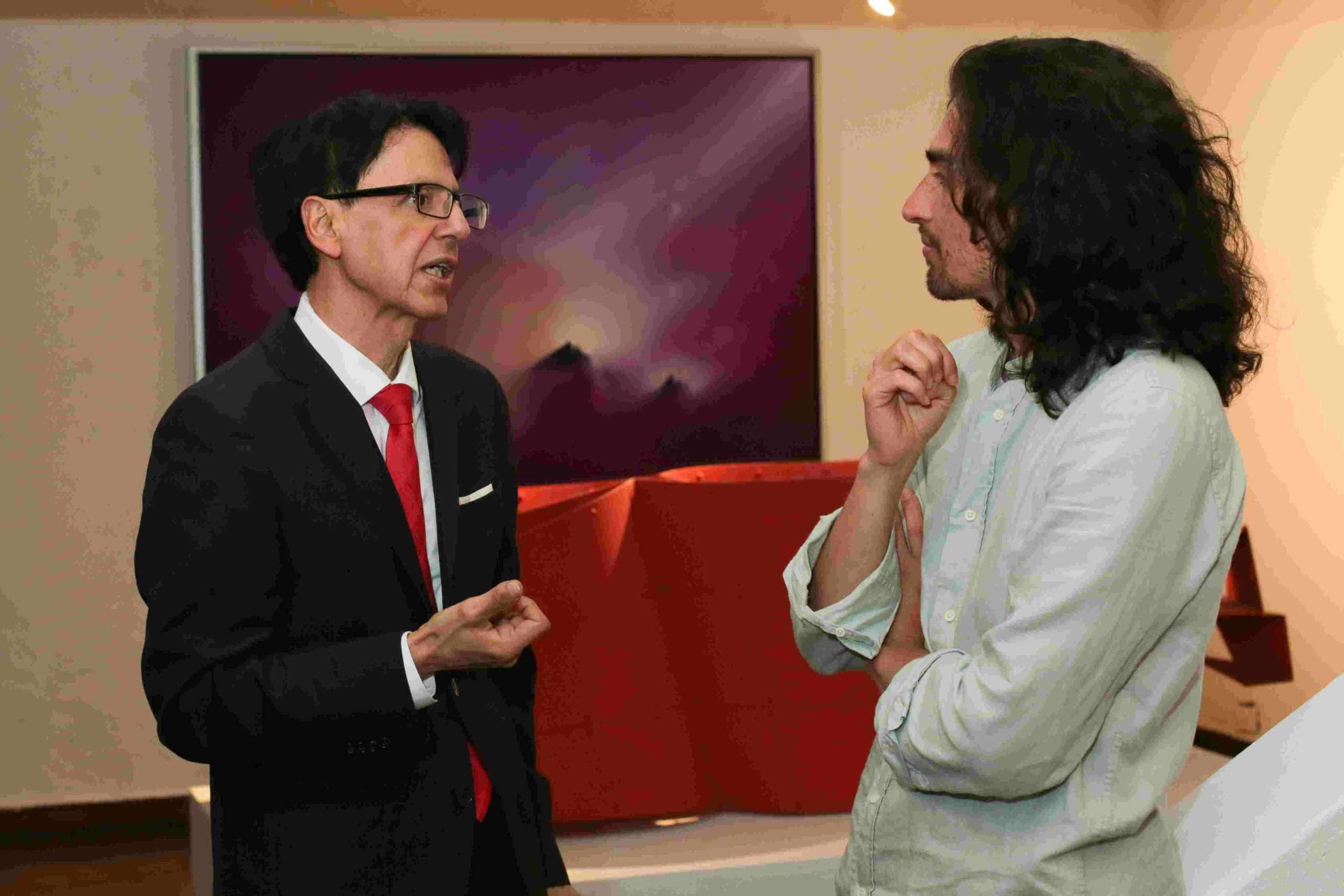 El periodista y escritor Carlos Gustavo Álvarez Guzmán condujo el conversatorio con la artista María Isabel de Lince, en una interesante y muy entretenida charla que los asistentes disfrutaron.