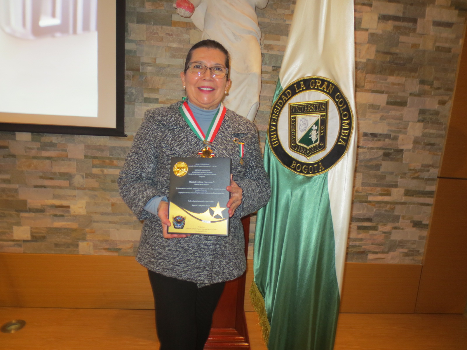 La directora de la Revista MOMENTOS, María Cristina Guerrero, recibió las condecoraciones en reconocimiento a su compromiso con los valores que fortalecen a Colombia: “Su ejemplo de servicio y amor por la patria inspira a las presentes y futuras generaciones”.