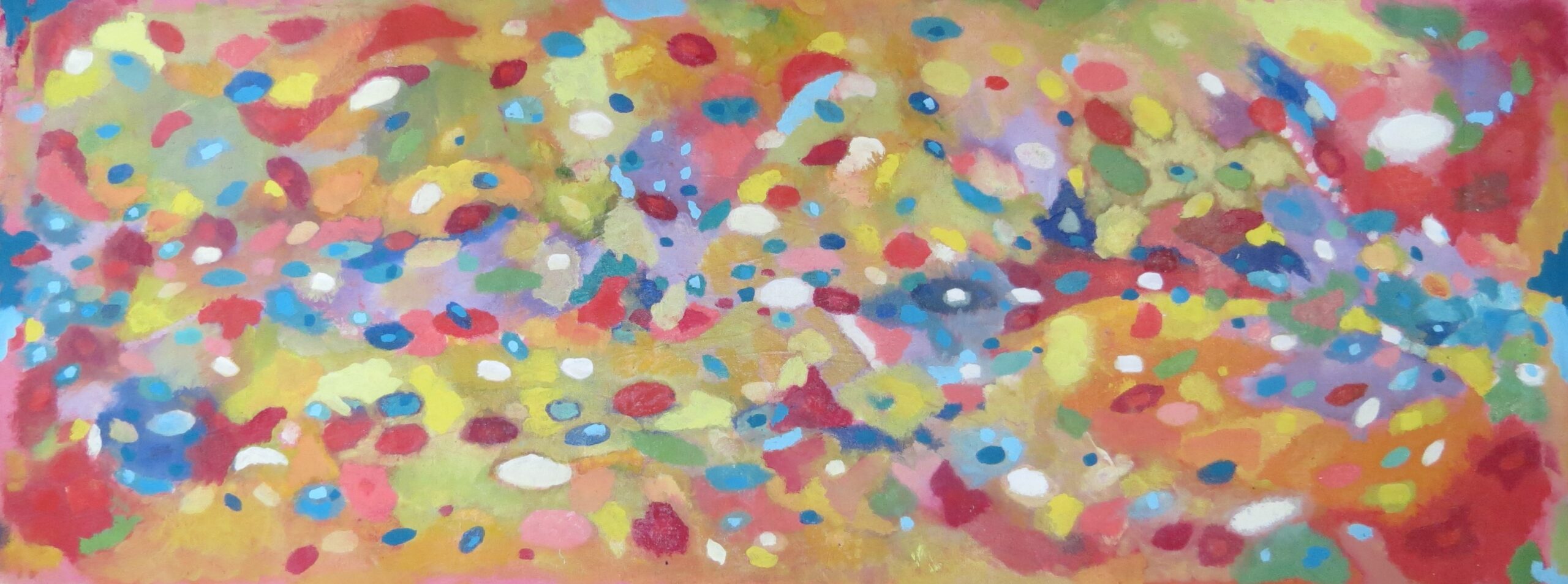 Ahora estoy centrado en pintar y cada pintura es diferente y familiar de la siguiente; retomo mis comienzos cuando no sabía pintar, me inspiro en una guayaba que está compuesta de una rica gama de rosados, esto me llevó a buscar la vida en el color; para mí el color es vibración y es energía, al combinar un color con otro se hacen chispas de alegría. Quiero seguir indagando en la pintura y en las vivencias cotidianas sin temor a desencantarme.