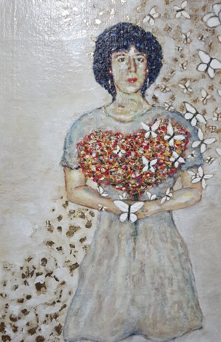 - Mariposas y flores Dimensiones: 84X 64Cm Técnica: , óleo y acrílico/2021
