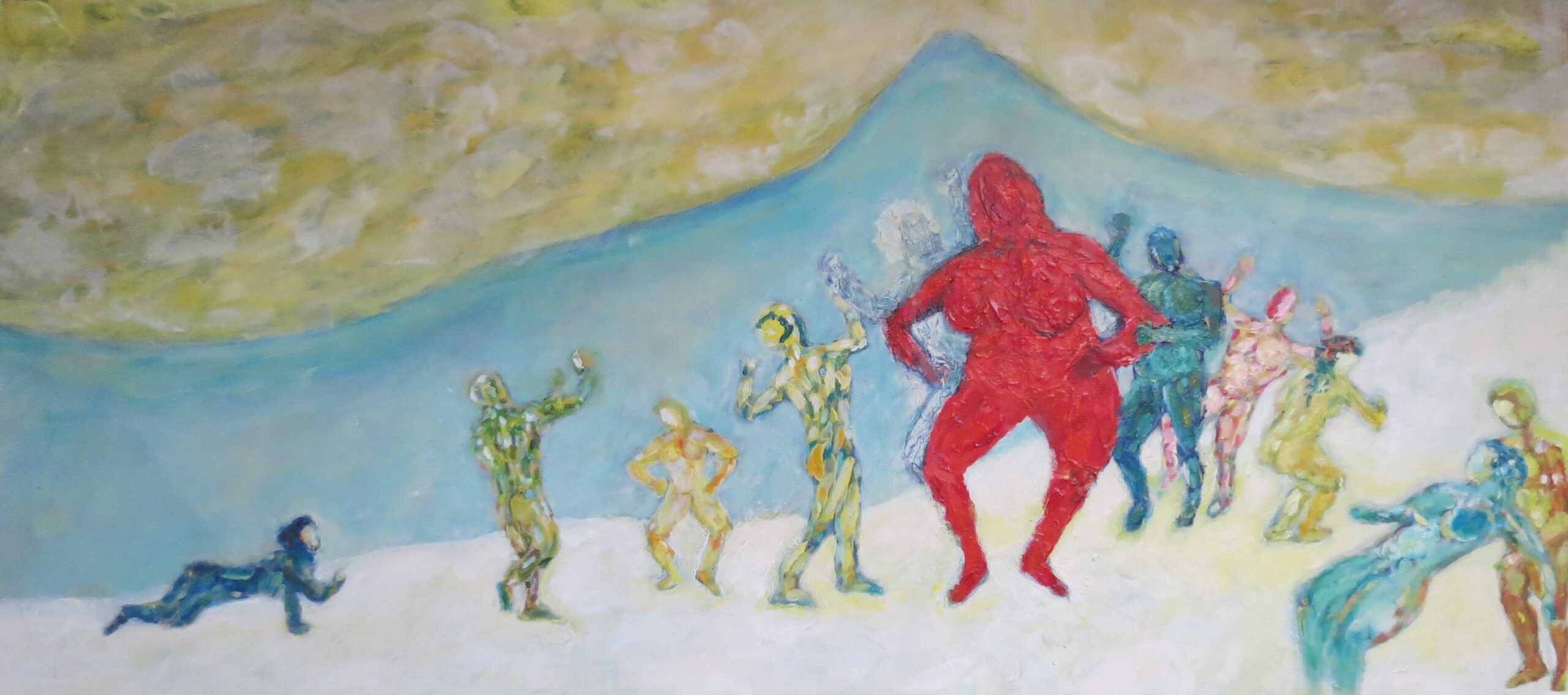 - Fermento y cielo Dimensiones: 120 X 60 Cm Técnica: laca, óleo y acrílico Año: 2022