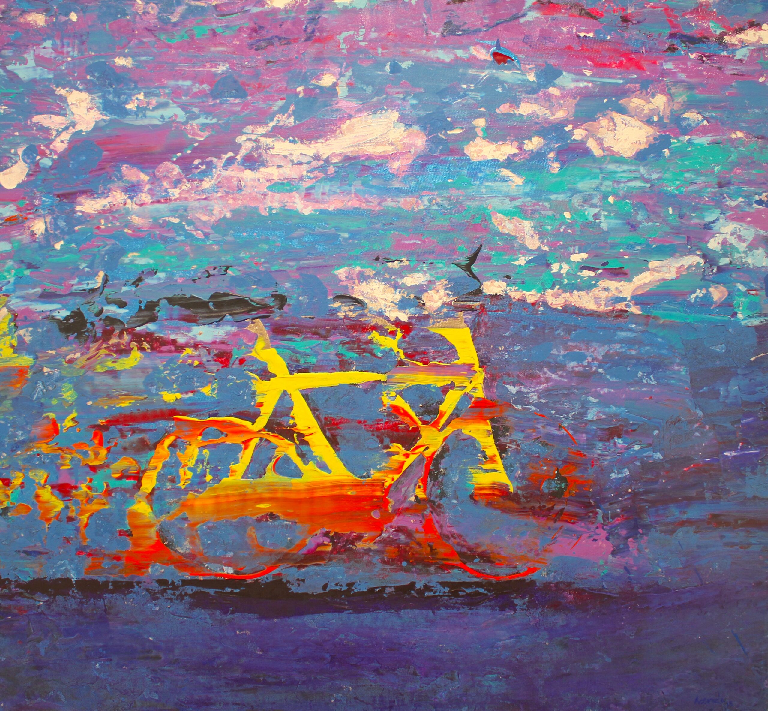 “La nueva serie que veremos en esta exposición, es parte de mi proceso de madurez como artista, donde encuentro una paleta cromática, que me conecta a nivel de las necesidades de transmitir un tema espiritual y por el otro lado, el efecto de los espejos que siempre me ha inspirado, todos estos elementos se unen para hablar de lo que para mi significa “El Dualismo del ser”, explica el artista.