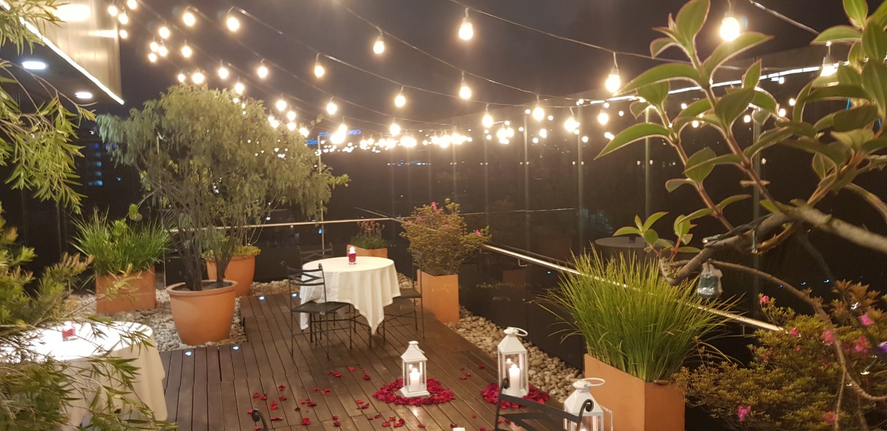 A sus colaboradores los enorgullece ser testigos del amor que florece en el restaurante, y es por ello que han creado un verdadero y bien diseñado plan romántico para aquellos que eligen compartir sus momentos más especiales. Todos son cómplices de los novios, ayudándoles a elegir las mesas cerca de sus grandes ventanales, que ofrecen una vista privilegiada de la ciudad, como el escenario perfecto para declarar su amor.
