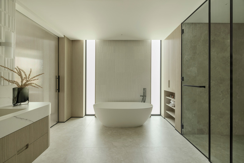 En su esencia reside la creencia en la atemporalidad. Grounded Design evitó los gestos evidentes o los excesos teatrales, optando en cambio por la claridad de las formas y la elegancia de los detalles. Las aberturas de gran formato permiten que la luz penetre profundamente en los interiores, transformando el ambiente a lo largo del día. El volumen se utiliza con moderación, pero con eficacia, permitiendo que los espacios respiren sin resultar vastos ni impersonales.