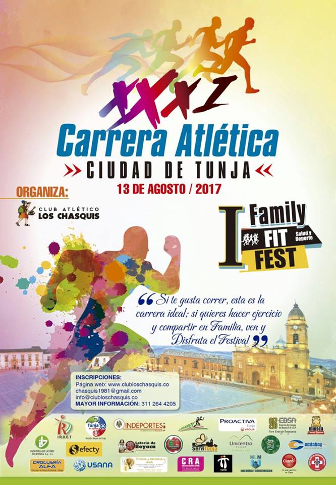 En el marco de la versión XXXI de la Carrera Atlética Ciudad de Tunja, se realizará el I FAMILY FIT FEST para integrar la Salud y el Deporte. Será toda una experiencia de bienestar en donde todos los que lleguen a la Plaza de Bolívar, escenario del evento, podrán disfrutar de un día completo de actividades que les van a motivar para tener una vida mucho más saludable.